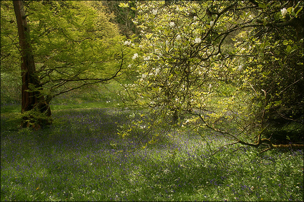 Det fanns ett ställe i dalen som kallas "The Sherry Orchard" - körsbärsträdgården. Jag blev helt betagen av den platsen. Den förtrollade mig totalt och jag gick omkring där under de kraftiga träden, jag sveptes med av solens och skuggornas dans, jag smektes av den ljumma brisen som svepte över ett blått vajande hav av English blue bells. Jag kom att tänka på Bröderna Lejonhjärta och landet Nangijala. Den magi jag kände när jag var där går naturligtvis inte att förmedla men jag vill ändå försöka genom att visa några bilder från den där magiska dagen, i körsbärsdalen ...