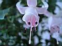 En hängfuchsia med stora vita blommor med dragning åt rosa. Den är lite nyckfull. Om den trivs blir den jättefin. Men ibland vill den sig inte alls. Svår att övervintra men jag brukar ändå köpa en varje år. |