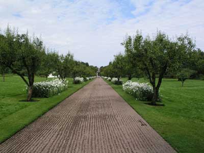 Norrvikens trädgårdar sommaren 2004 Ända sedan jag såg ett reportage i Gröna Rum på TV om Norrvikens trädgårdar utanför Båstad har jag alltid velat åka dit. Och ... sommaren 2004, närmare bestämt den 1 augusti var det äntligen dags. Norrvikens trädgårdar grundlades 1906 av dess skapare Rudolf Abelin. Känslan att gå bland dessa olika trädgårdsrum, renässans, barock, japansk etc och hela tiden känna havets närvaro är mäktig. Vi hade bestämt oss för att åka dit så tidigt som möjligt så vi var där redan vid öpppningsdags, kl 10:00. Det visade sig vara en god idé. Dels blev vädret lite sämre senare under dagen, dels var det inte så mycket folk så tidigt. Vi gick den långa vägen upp mot Villa Abelin på nykrattade gångar ...Husets form och färg passade bra in i den lummiga grönskan omkring ...